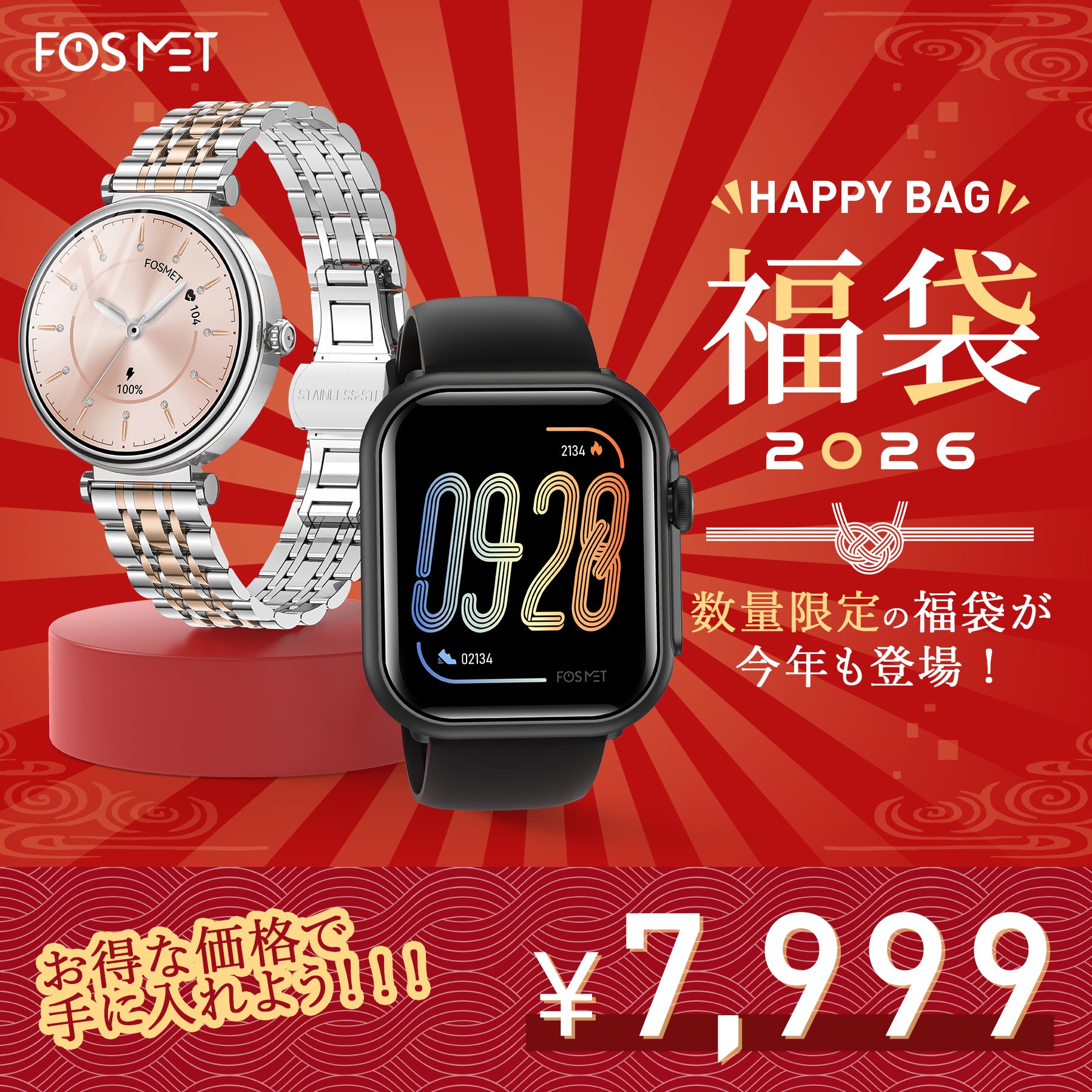 【限定50個(P1ブラック+G1シルバー)】FOSMET 2026 LUCK BAG FOSMET スマートウォッチセールスプライス ¥7,999通常価格 ¥14,960あなたは保存した 46% オフ