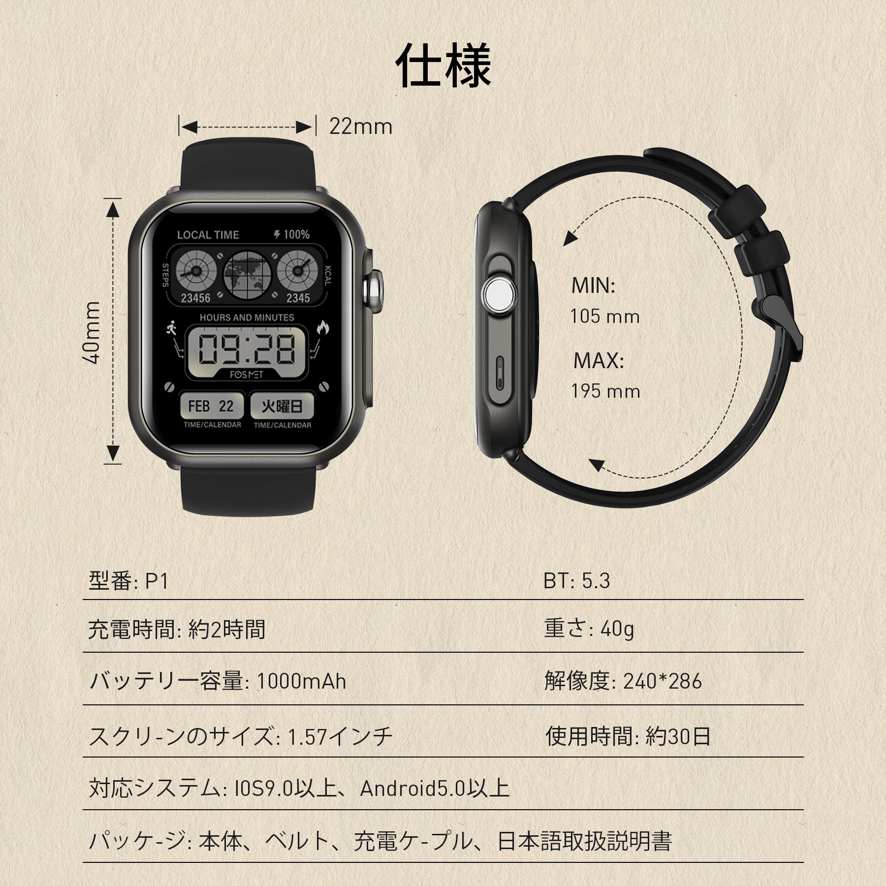 🌟【限定50個】FOSMET 2026 LUCK BAGが登場!P1ブラックとG1シルバーの組み合わせが魅力的です。スマートウォッチはBluetooth5.3に対応し、IP68防水機能も備えています。メッセージ通知機能付きで、120のモードを搭載。iPhoneとアンドロイド両方で使用可能です。TELECブラック仕様です。