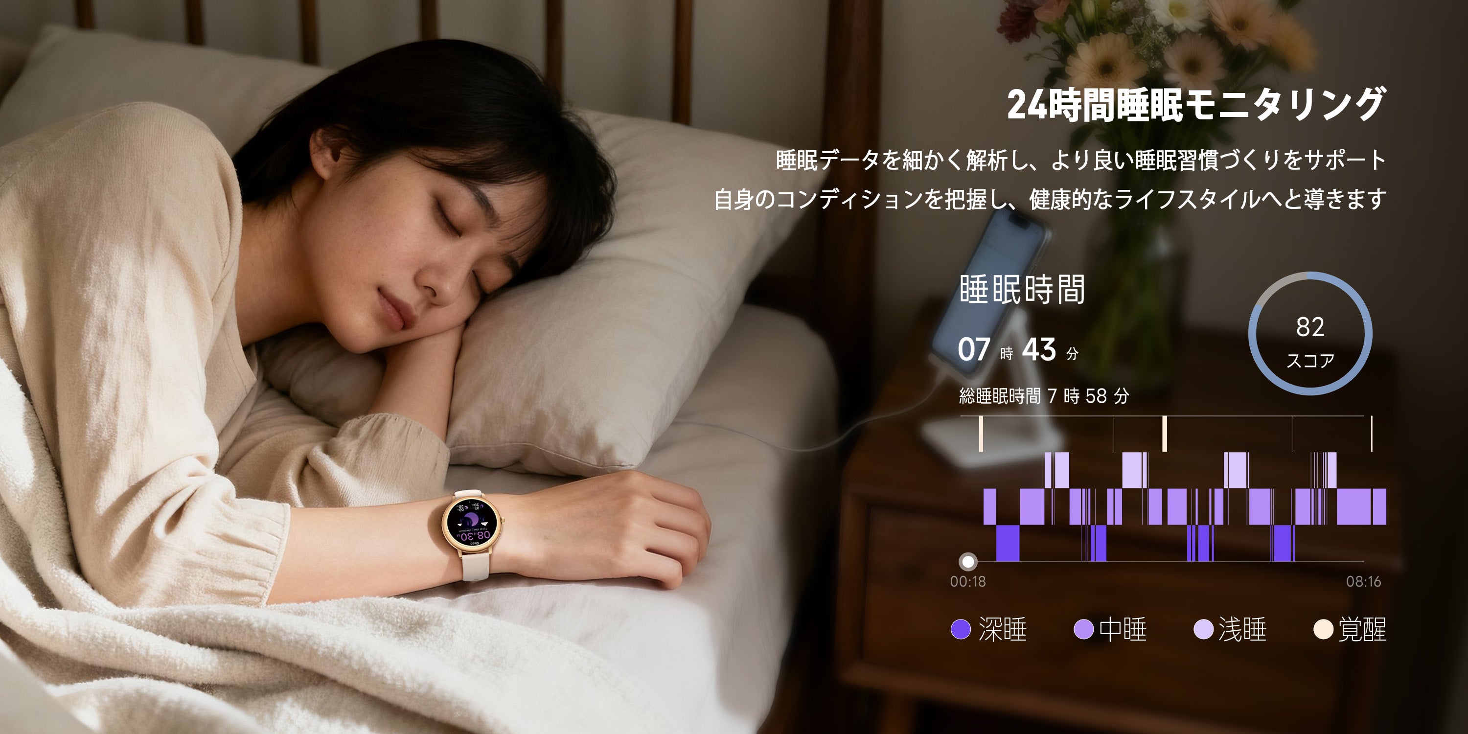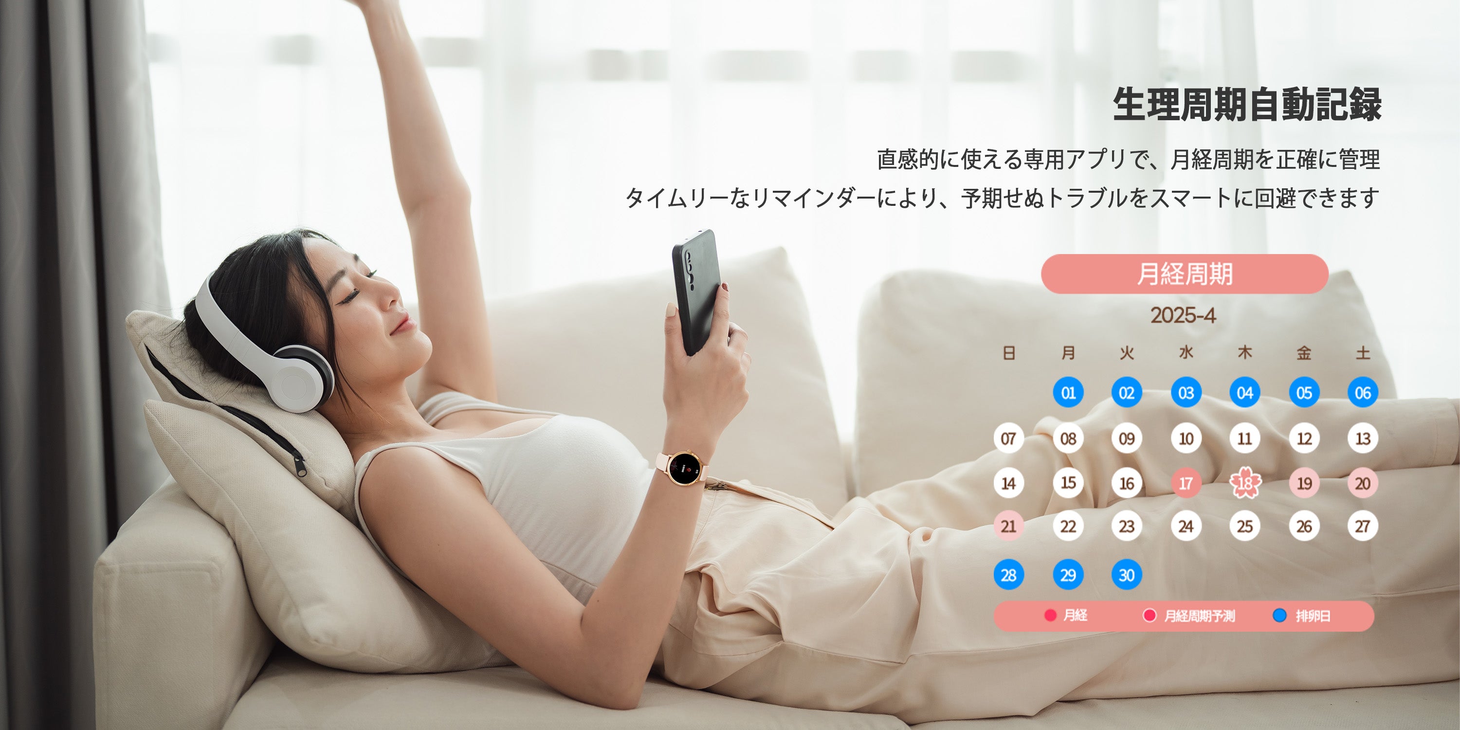 - 【女性にやさしい多機能ヘルスケア管理】 スマートウォッチは24時間心拍数や血中酸素を自動で測定し、睡眠状態を詳細に記録できます。女性の体調周期を考慮した健康管理機能も搭載しています。日々のコンディションを把握し、より健康的なライフスタイルをサポートします。