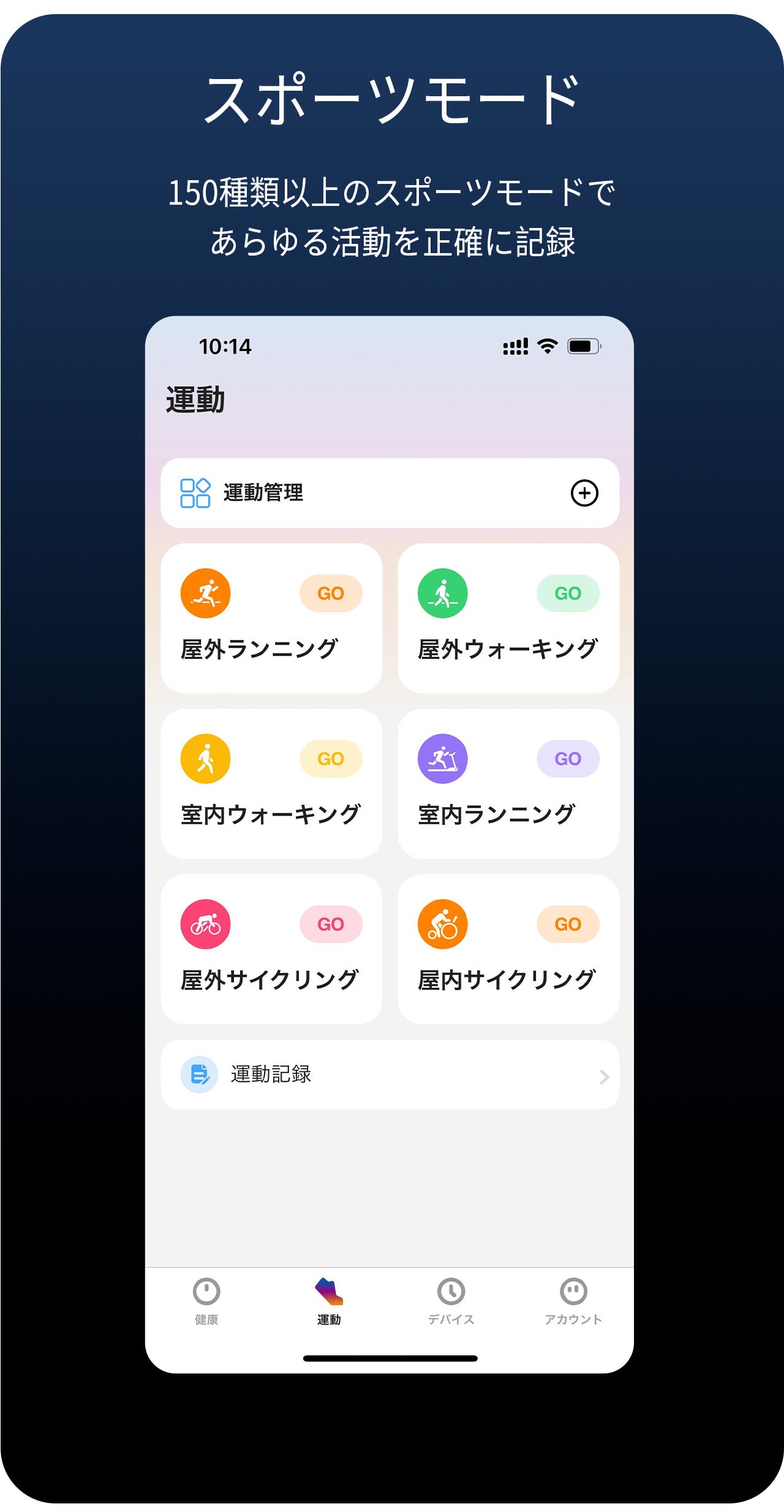 150種類以上のスポーツモードで、あらゆる活動を正確に記録