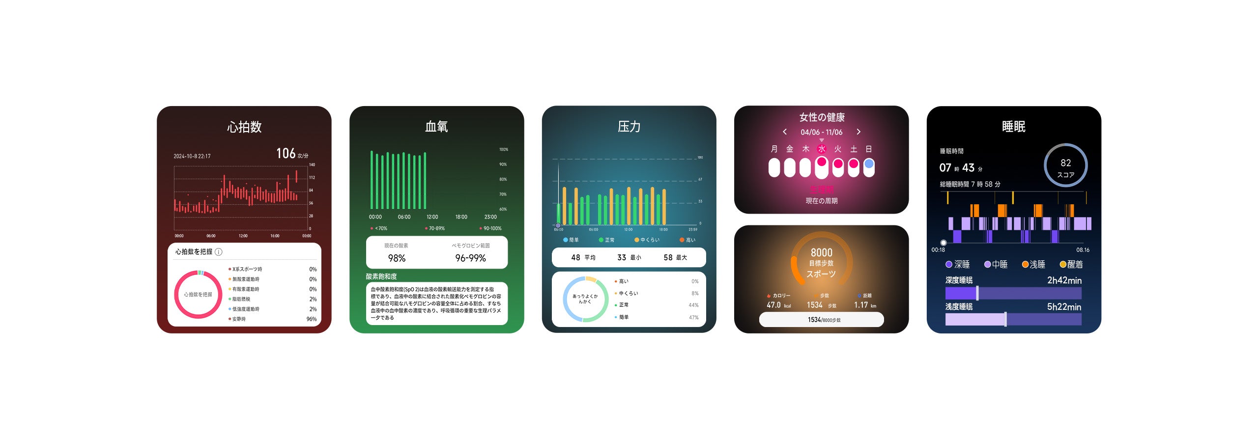 24時間心拍数、血中酸素、睡眠の質を継続的に監視
