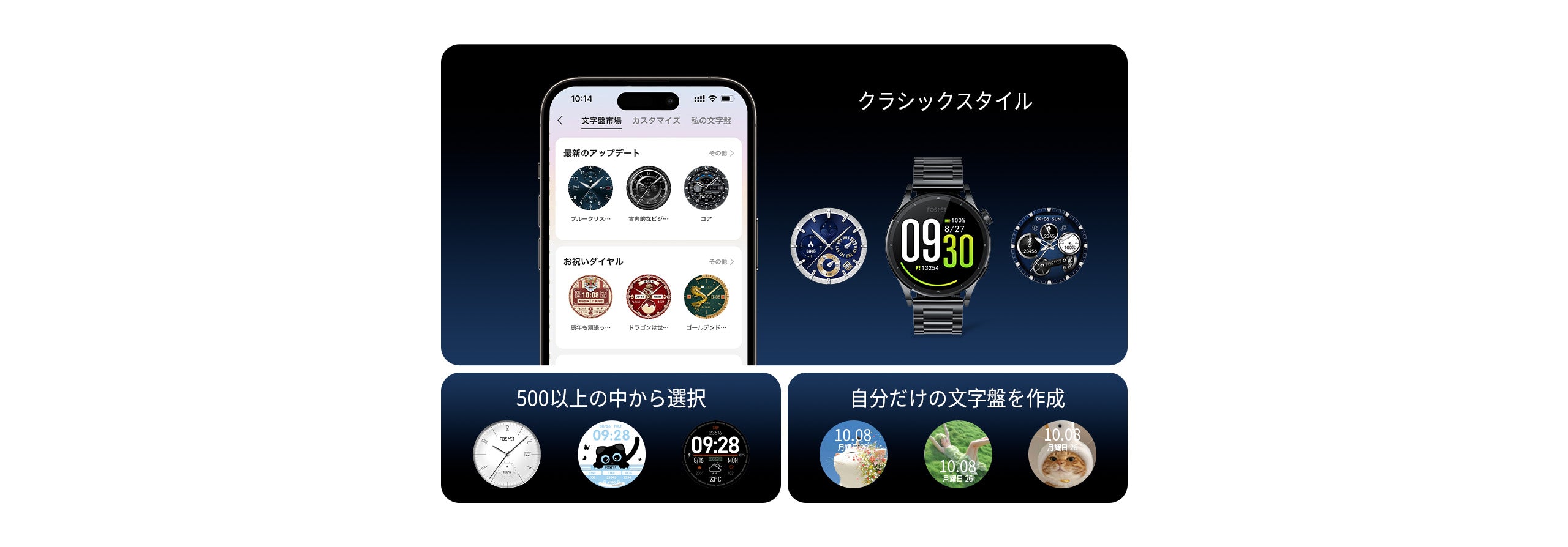 500以上の中から選択または自分好みの文字盤を作成